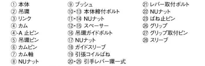 【產品名稱】HA-110三木橫吊鋼板鉗配件 【產品品牌】日本·三木(NETSUREN) 【產品保質】保質期12個月 【產品分類】橫吊鋼板起重鉗 煙臺開發區龍海起重工具有限公司代理銷售日本·三木NETSUREN鋼板鉗,使用壽命長,但在使用過程中難免有配件損壞的情況發生,龍海起重工具能為購買HA-110三木橫吊鋼板鉗的客戶提供產品配件,HA-110三木橫吊鋼板鉗配件分解圖如下: