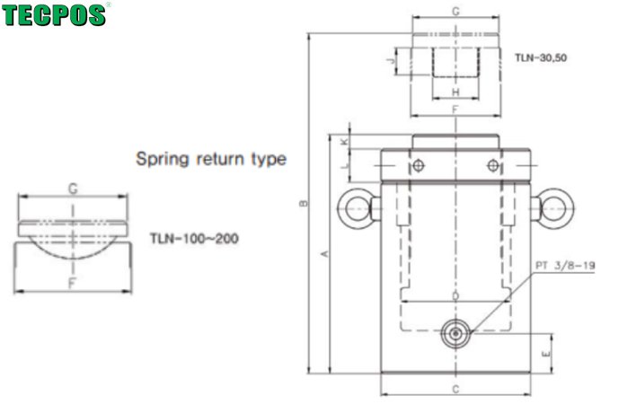 TECPOS TLN自鎖分離式千斤頂型號 TLN-30200、TLN-50200、TLN-100230、TLN-150230、TLN-200230 |