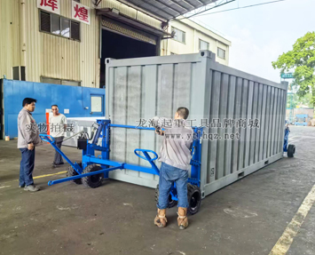 輪式集裝箱搬運車產品介紹: 輪式集裝箱搬運車是一款集裝箱提升和運輸于一體的常用工具,只需兩個人即可輕松提升或降低集裝箱。 將搬運車的輪子連接到集裝箱角件,選擇合適的車輛,在平坦地面安全行駛,即可以每小時7.5英里的速度推動或拖拽重物; 20英尺集裝箱的轉彎半徑約為10米,要想減少轉彎半徑,您可以解鎖后輪并用手輕輕轉向,用手操縱后角單元需要光滑的表面(混凝土、瀝青)等。 采用耐磨的大輪子設計,因此,輪式集裝箱搬運車可用于粗糙路面。 可廣泛用于海內外集裝箱堆場的集裝箱地面搬運,儲能柜、集裝箱方艙的搬運及定位、以及各種需要搬運集裝箱的室外場景。 輪式集裝箱搬運車使用示意圖: