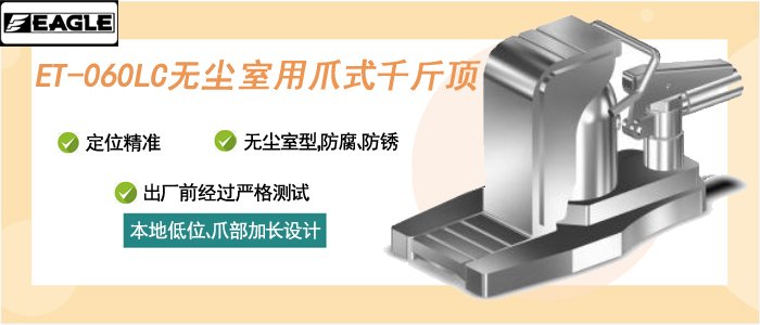 【產品品牌】日本鷹牌 【產品規格】ET-060LC無塵室用爪式千斤頂(爪部載重3噸頂部載重6噸) 【產品保質】保質12個月 【應用范圍】ET-060LC無塵室用爪式千斤頂被適用于各種需要高度潔凈的環境,如無塵車間、潔凈室、食品車間、電子精密設備起頂、半導體、醫療設備、液晶面板制造、核電等領域。?